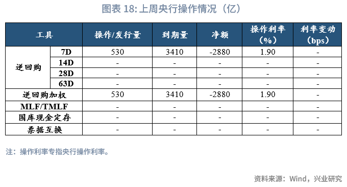 上周央行公开市场共投放530亿元,到期3410亿元,净回笼2880亿元。其中,逆回购投放530亿元,到期3410亿元。逆回购加权平均期限7天。截止上周末,共有530亿逆回购未到期。