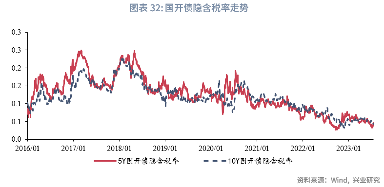从隐含税率来看,上周10年期国开债隐含税率为3.63%,较前一周下降0.34个百分点;5年期国开债隐含税率为4.04%,较前一周下降0.78个百分点。