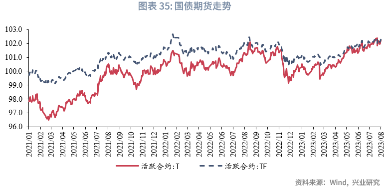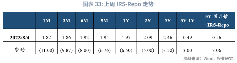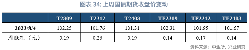 从利率衍生品走势来看,1年期IRS-Repo收于1.98%,较上周变动-5bps,5年期IRS-Repo收于2.47%,较上周变动-3bps;T2309收于102.25,较上周变动0.19元;TF2309收于102.31,较上周变动0.14元。