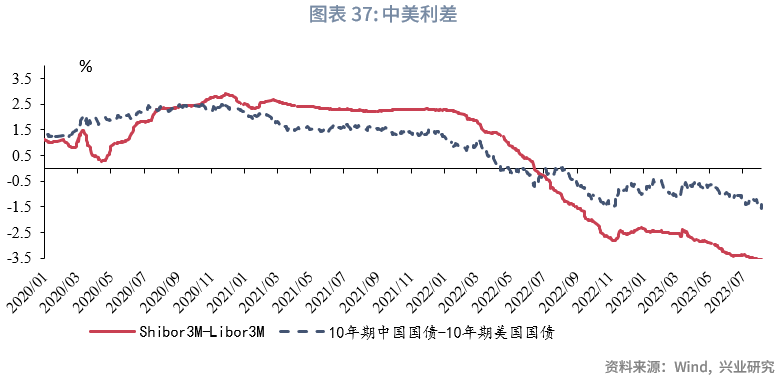 从中美利差来看,上周Shibor3M与Libor3M利差为-346.26bps,较前一周下降4.05bps;10年期中国国债与10年期美国国债利差为-111.87bps,较前一周上升30.1bps。