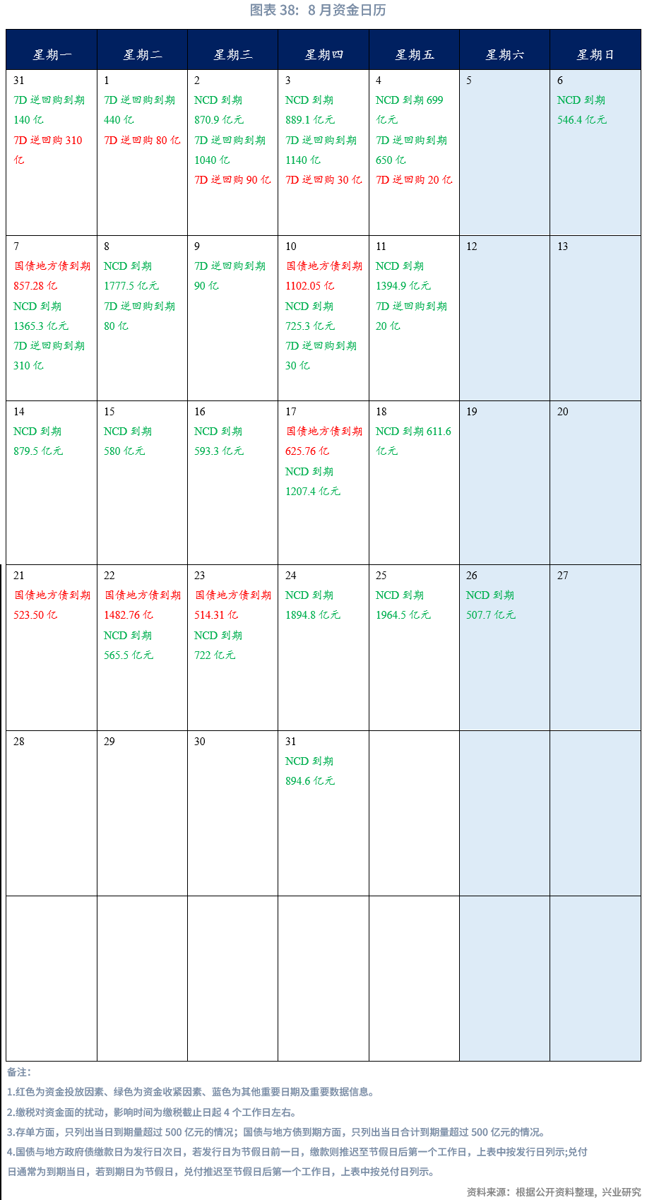从资金面来看,8月扰动因素包括:政府债发行、缴税等。预计央行将适时放大OMO和MLF予以对冲,保持流动性均衡。NCD规模预计稳中有降,而利率预计低位震荡。