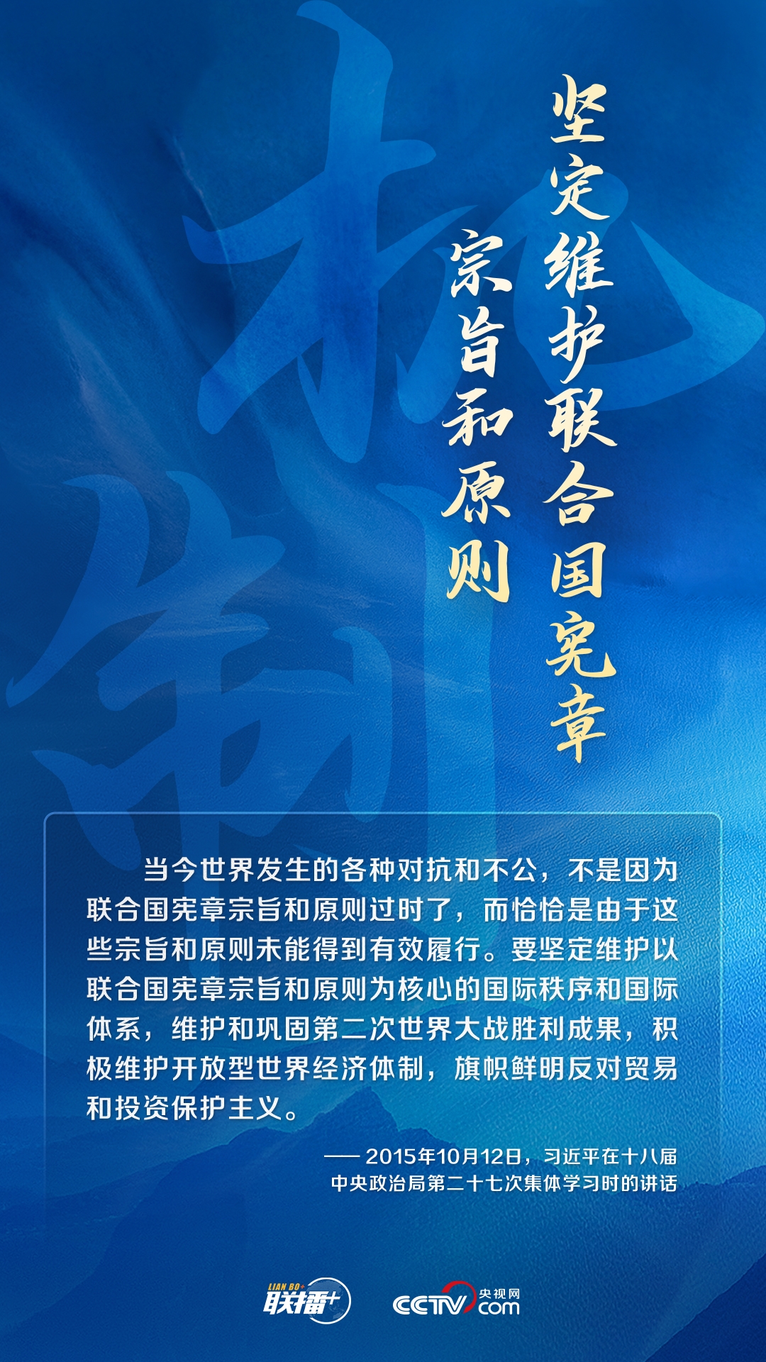 世界上只有一个体系,就是以联合国为核心的国际体系;只有一套规则,就是以联合国宪章为基础的国际关系基本准则。中国始终以实际行动践行联合国宪章宗旨和原则,持续为人类文明和进步事业贡献中国方案,承担大国责任,展现大国担当。
