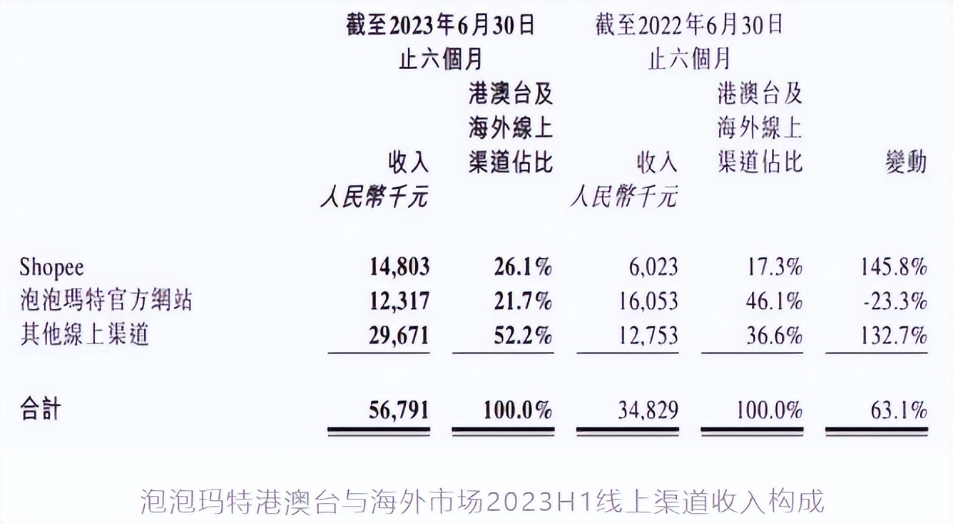 目前泡泡玛特最主要的海外电商平台是Shopee,上半年贡献收入约人民币1480.3万元,其次泡泡玛特官网收入约1231.7万。