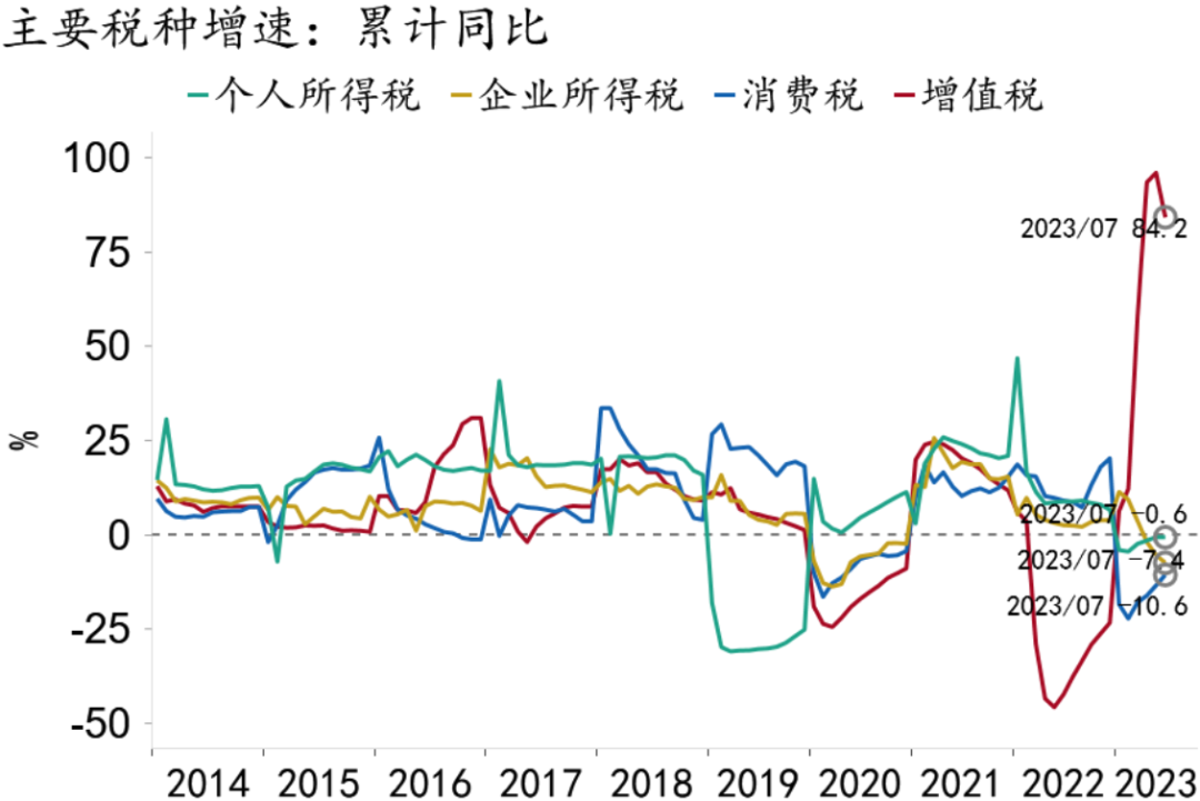 图5:主要税种表现分化,消费税低位反弹