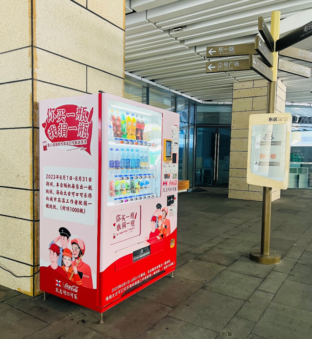 高温酷暑,盛夏时节,海南岛上的温度逐渐攀升。为了给坚守高温工作岗位的一线工作者送去一丝清凉,海南太古可口可乐饮料有限公司于8月15日发起了 “你买一瓶,我捐一瓶”的爱心自贩机公益活动。