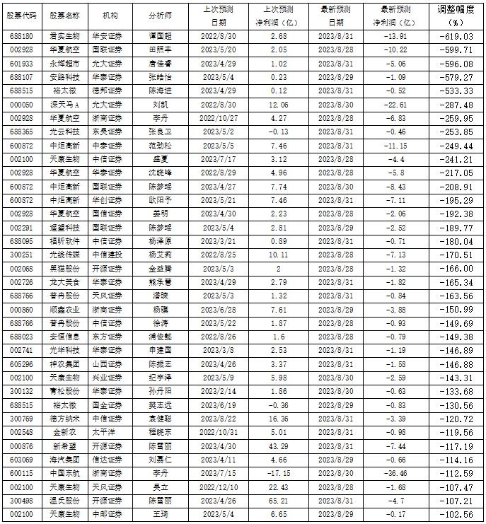 被下调今年盈利预测值896家公司中,君实生物(688180)遭下调幅度居前。投资快报投研通数据显示,华安证券分析师谭国超在8月31日发表的报告中,预计君实生物2023年净利润为-13.91亿元,而其在去年8月30日的研报中预计为2.68亿元;谭国超本次下调安恒信息净利润预测值幅度可见一斑。