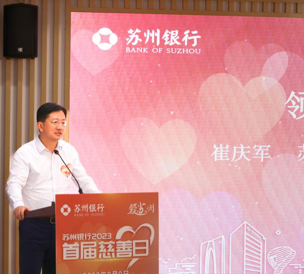 苏州银行党委书记、董事长崔庆军在讲话中表示,首届“爱苏州”慈善日活动开启了苏州银行公益慈善工作的新篇章,苏州银行将继续以“达则兼济天下”的责任担当,投身慈善公益事业,营造扶危济困、乐善好施的公益氛围,始终将客户满意、员工获得、股东赞许、监管认可、社会称道作为不懈奋斗方向,努力打造企业百姓信赖银行,以实际行动为苏州公益慈善事业增光添彩!
