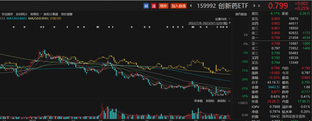 跟踪中证创新药产业指数的ETF中规模最大的创新药ETF(159992)盘中震荡走高,拉升翻红,盘中频现溢价交易。截至发稿,该ETF上涨0.25%,成交金额超3400万元。