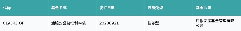 9月21日有1只新基金发行,分别为:浦银安盛普恒利率债,详情见下表: