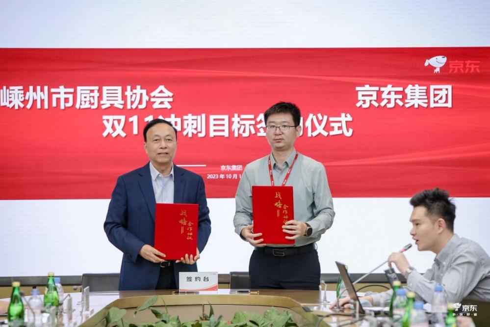 会议现场,京东冰洗厨卫业务部与嵊州市厨具行业协会签订《京东与嵊州集成厨电产业2023年11.11冲刺目标协议》。京东家电与嵊州集成厨电产业带共同冲刺本次京东11.11销售,力争再创11.11销售新高。