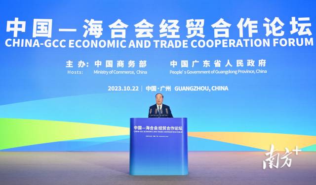 10月22日下午,由商务部、广东省人民政府共同主办的中国—海合会经贸合作论坛在广州开幕。省委书记黄坤明出席论坛开幕式并致辞。南方+记者 王辉 摄