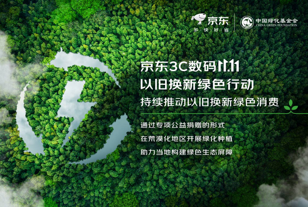 为汇聚更多环保力量,践行企业社会责任,2023年11.11期间,京东3C数码将联合中国绿化基金会开展“以旧换新绿色行动”,持续推动以旧换新绿色消费。本次“以旧换新绿色行动”将通过专项公益捐赠,由中国绿化基金会在荒漠化地区开展绿化种植,助力当地构建绿色生态屏障。作为国家林业和草原局主管的全国性公募基金会,中国绿化基金会将根据种植地区的土壤、自然条件制定造林计划,确保种植公益项目顺利落地,以实际行动守护绿色家园。