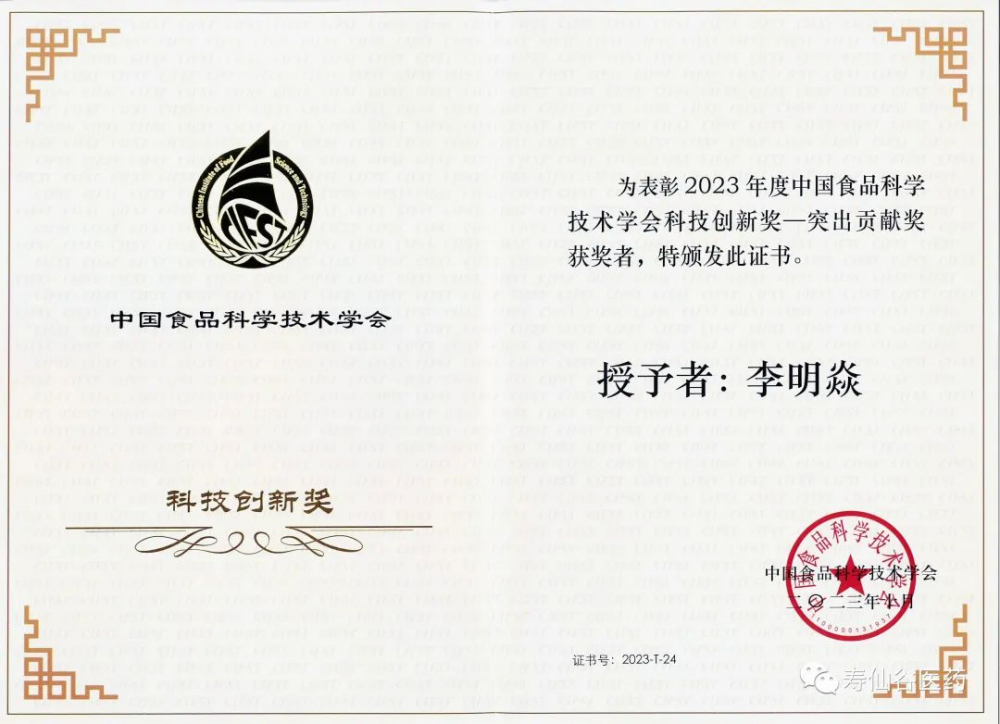 当前,世界已经进入大科学时代,食品产业的高质量、可持续发展,需要以科技创新寻找最优解。10月24日,中国食品科学技术学会第二十届年会在长沙召开。会上,寿仙谷公司董事长李明焱荣获“科技创新奖-突出贡献奖”。