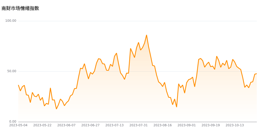 今日南财市场情绪指数为47.8,较前一交易日47.2基本不变,市场投资热度处于中立水平。