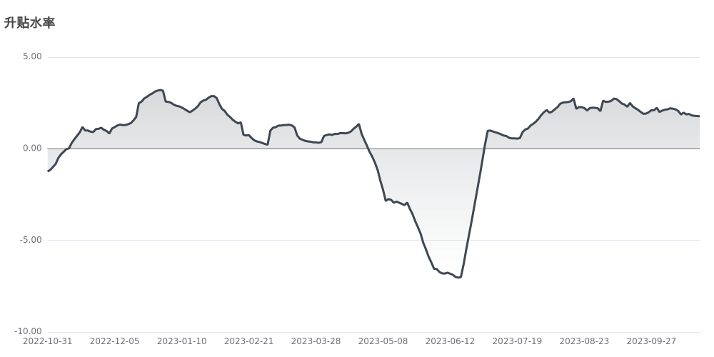 今日该指标值为1.77%,目前该指标处于近一年中立区间,说明投资者对A股持1中立情绪。反映期货市场投资者对市场的看法,该指标越高说明投资者认为当前市场较强,越低则说明认为市场相对较弱,因而与上证指数正相关。