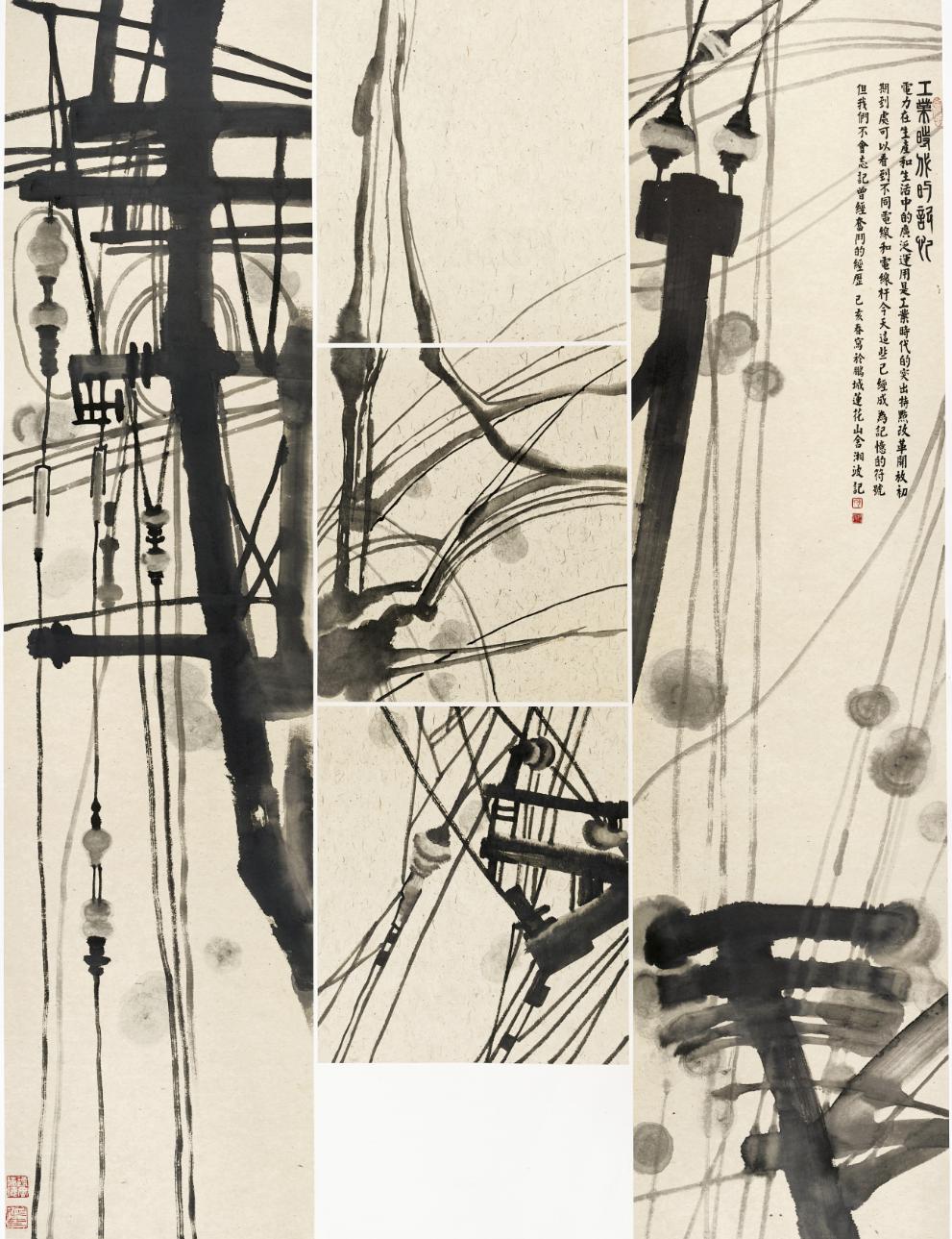 陈湘波《工业时代的记忆》 纸本水墨 236x200cm 2022