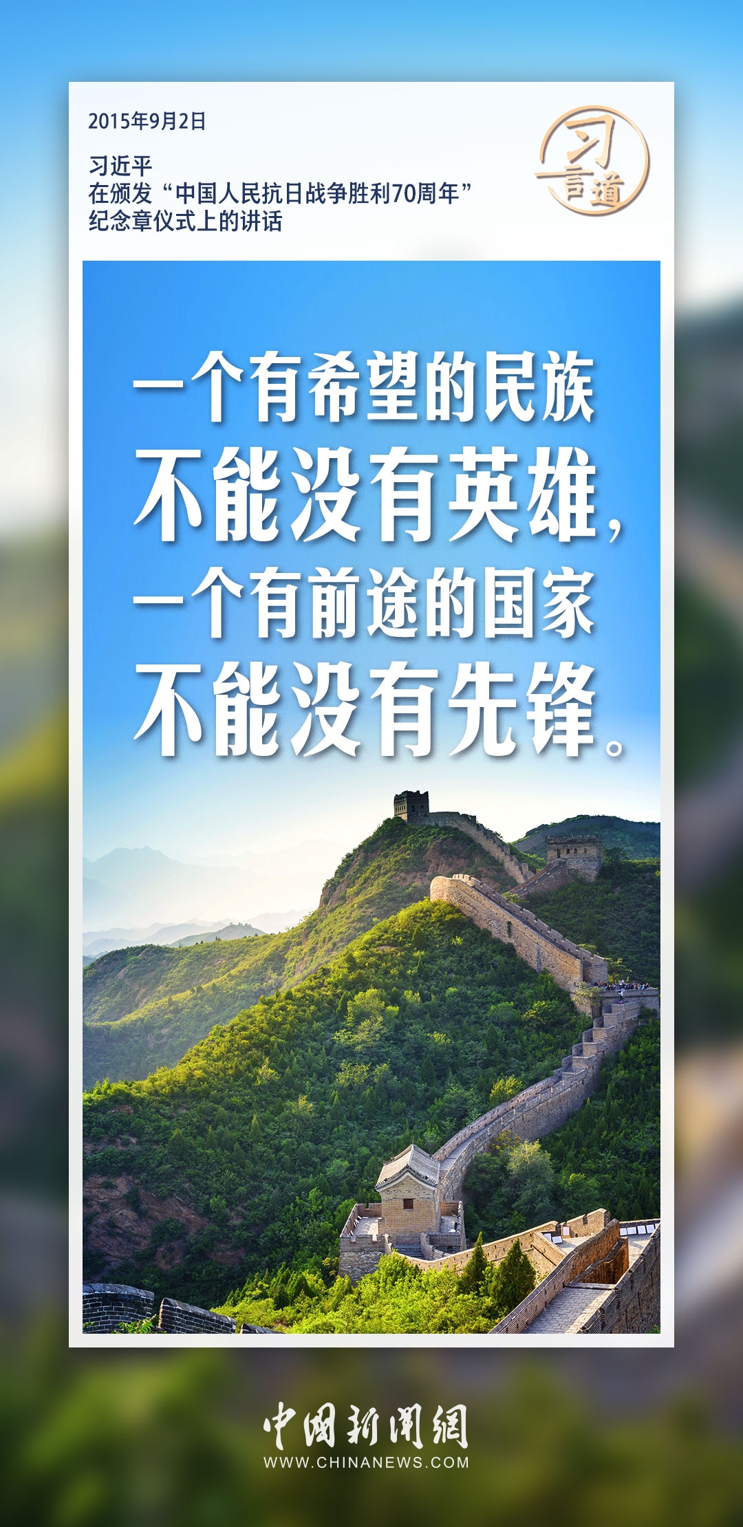 习近平总书记在多个场合深切缅怀革命先烈、革命烈士,强调一个有希望的民族不能没有英雄,一个有前途的国家不能没有先锋。
