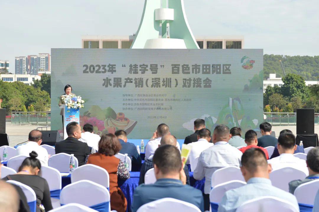 田阳区人民政府党组成员梁颖琳为此次对接会致辞并宣布活动正式启动。据悉,近年来,田阳区围绕“农业强区”战略,全面实施“产业富民”行动,大力发展芒果和圣女果“一红一绿”支柱产业,全区水果种植面积50.6万亩、蔬菜种植面积达40万亩,其中,番茄全年种植面积达23万亩、产量66万吨、产值超过19亿元;芒果种植面积43.3万亩、产量36万吨、产值超过18亿元。自深圳市和田阳区结队帮扶以来,田阳区积极引导“深企入桂”,促进田阳区农业产业提质升级。目前,田阳区累计建成3个粤港澳大湾区“菜篮子”基地、2个深圳市“菜篮子”基地、4个供应深圳农产品示范基地、6个“圳品”基地,认证11个“圳品”产品。
