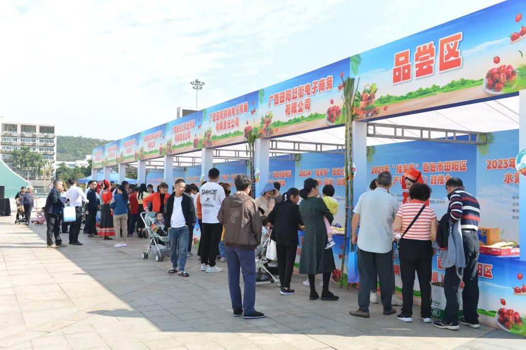 为进一步加强产销对接,深化粤桂协作,12月4日,2023年“桂字号”百色市田阳区水果产销(深圳)对接会在深圳市光明区正式启动。田阳区、光明区各相关部门领导、协会、企业代表参加本次对接会。活动现场,来自田阳区832平台企业、获得“圳品”认证、获得“扶贫”产品认证等15家企业参加集中展销,圣女果、百香果、柚子等鲜果、粮油、果干、预制菜、芒果酒等百余种“桂字号”农特产品惊艳亮相,吸引了众多市民前来驻足品尝选购。