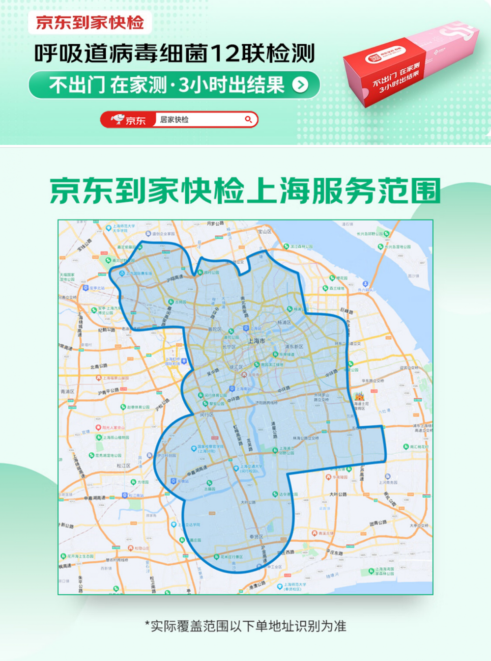 冬季呼吸道疾病高发,多种病毒交叉感染风险高,为满足广大消费者自检需求,京东到家快检“呼吸道病毒细菌12联检”服务继在北京上线后,本周成功落地上海。据了解,首批京东到家快检服务网点不仅实现上海主城区全覆盖,嘉定、奉贤和浦东周浦等地居民也可在线预约,该服务还在持续扩大覆盖范围。