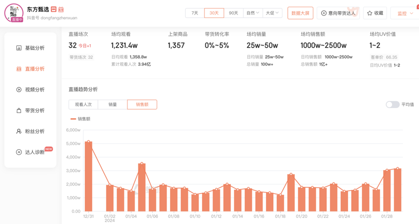而根据东方甄选发布的2024财年中期业绩,报告期内带货总GMV为57亿元。整个2023财年,东方甄选GMV为100亿元。