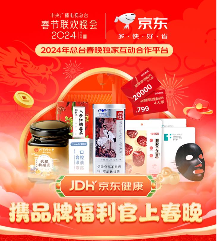 据了解,继2022年京东首次拿下春晚独家互动权后,2024年是京东第二次成为总台春晚独家互动合作平台。2月9日晚8点,锁定2024年总台春晚,登录京东APP参与互动,即有机会1分钱赢取包括上述奖品在内的实物好礼,众多健康好礼让你龙腾虎跃、龙马精神。