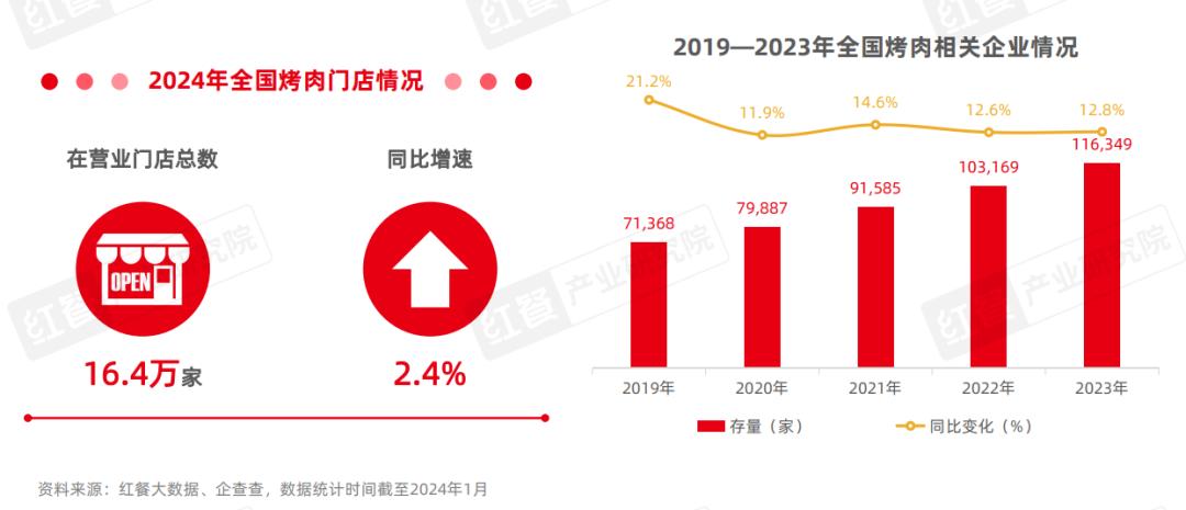 烤肉品类进入多元化发展的中兴期,门店数和相关企业数双双增长