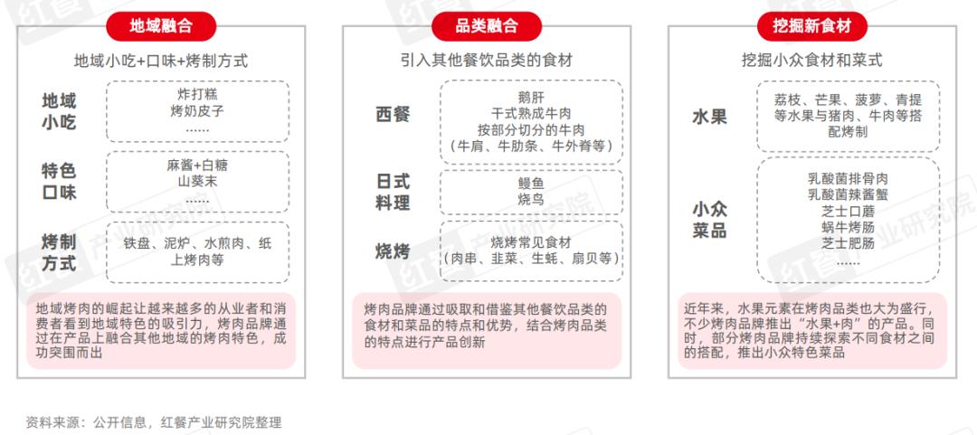 3.细分与融合并存,烤肉品牌以新奇、多元化的产品打动消费者