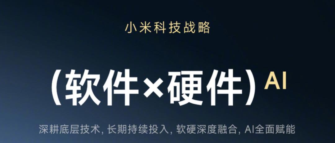 在去年的年度演讲中,雷军就宣布了小米科技的新战略:深耕底层技术、长期持续投入,软硬深度融合,AI全面赋能,总结为公式 (软件×硬件) ᴬᴵ。即,把AI放在所谓的“次方”地位。