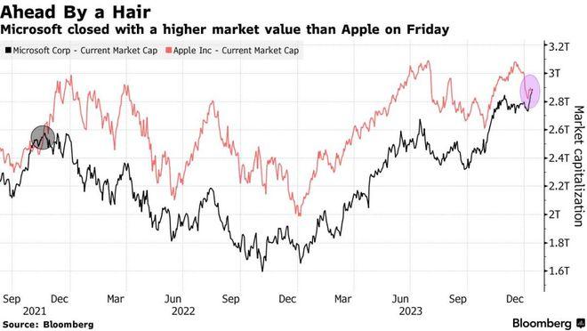 投资信托公司Synovus Trust的高级投资组合经理Dan Morgan则就二者未来的市值走势表示,“微软处于一个更有利的位置。苹果还在努力寻找下一个突破点。”