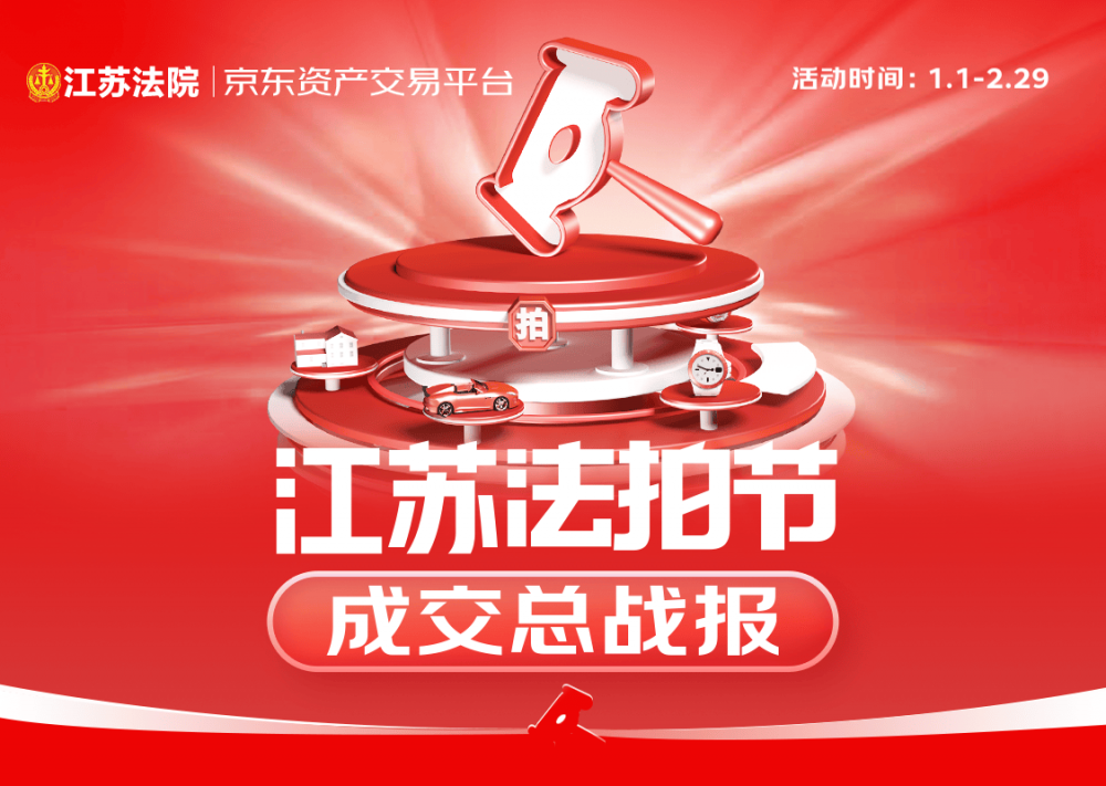 2月29日,随着最后一件拍品落槌成交,由京东资产交易平台携手江苏省高级人民法院及各中级法院、基层法院共同打造的“江苏法拍节”活动圆满结束。此次法拍节历时两个月,以丰富多样的优质拍品吸引了超140万人围观、近3000名竞拍者参与竞拍,最终成交拍品427件,累计成交金额超4亿元。法拍节活动期间,江苏地区多家金融机构、破产管理人协会也积极在京东资产交易平台上拍投资类项目,累计成交金额4.53亿元。