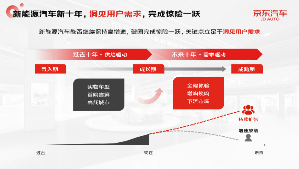 京东相关负责人表示,京东参与新能源汽车行业的初心,是因为有很多京东用户对于新能源汽车产品和服务有旺盛的消费需求,而满足他们的需求,就成为我们天然的使命。新能源汽车过去十年取得了非常大的发展和进步,销量和渗透率得到了非常大的提升。目前,行业比拼的远非单纯实物商品本身,服务的重要性越来越大。未来十年,新能源汽车要完成“惊险一跃”、保持高速增长的关键是洞见用户需求,通过提供“产品+服务”的全流程优质体验实现新的突破。