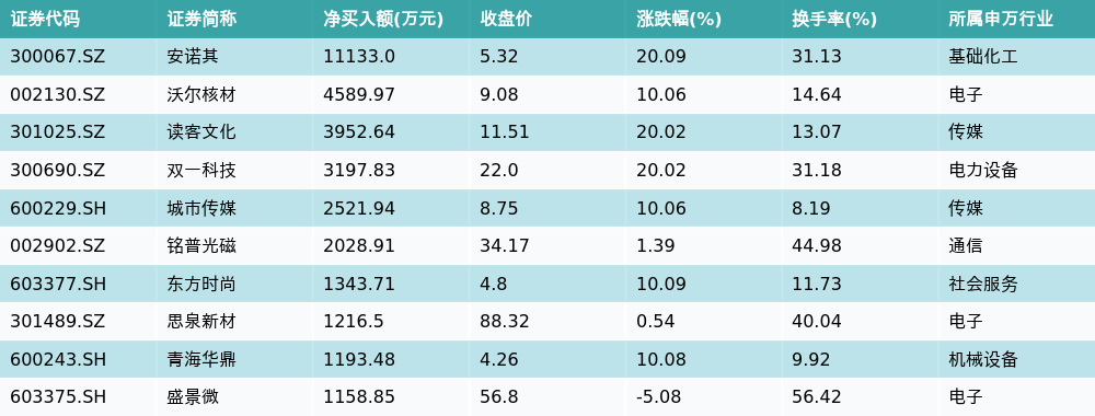 3月21日龙虎榜营业部净买入额前10详情见下表: