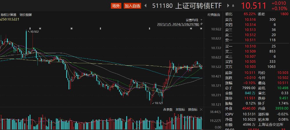 3月28日,截至发稿,沪指低开盘中低位震荡,跟踪上证投资级转债及可交换债(950041)的上证可转债ETF(511180)盘中震荡拉升,截至发稿,该ETF涨0.10%。成分债涨多跌少,精达转债涨超3%,福蓉转债、华设转债涨超2%,博23转债、众和转债、世运转债等跟涨;福能转债跌超1%,G三峡EB1、蓝天转债、洪城转债等跟跌。