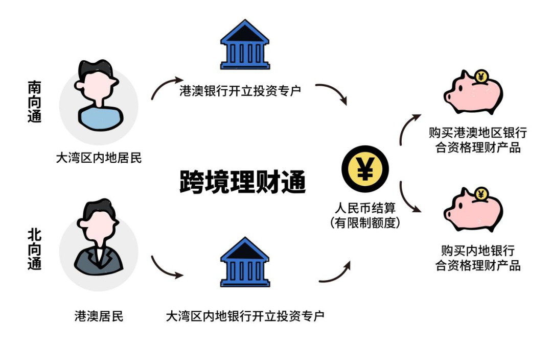“跨境理财通”是粤港澳大湾区的一项重要金融政策,即粤港澳大湾区内地和港澳投资者通过区内银行体系建立的闭环式资金管道,跨境投资对方银行销售的合资格投资产品或理财产品,该政策旨在促进大湾区内资本的流通和个人投资者的跨境投资。按照购买主体身份可分为“南向通”和“北向通”两个方向:
