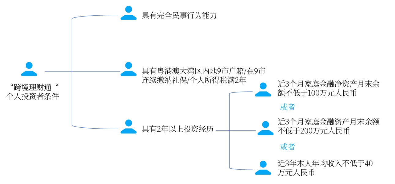 个人投资者首先要明确知道合格投资者的准入条件,根据中国人民银行广东省分行、中国人民银行深圳市分行、国家金融监督管理总局广东监管局等六个单位印发的《粤港澳大湾区“跨境理财通”业务试点实施细则》,开展“南向通”业务的内地投资者需满足以下条件: