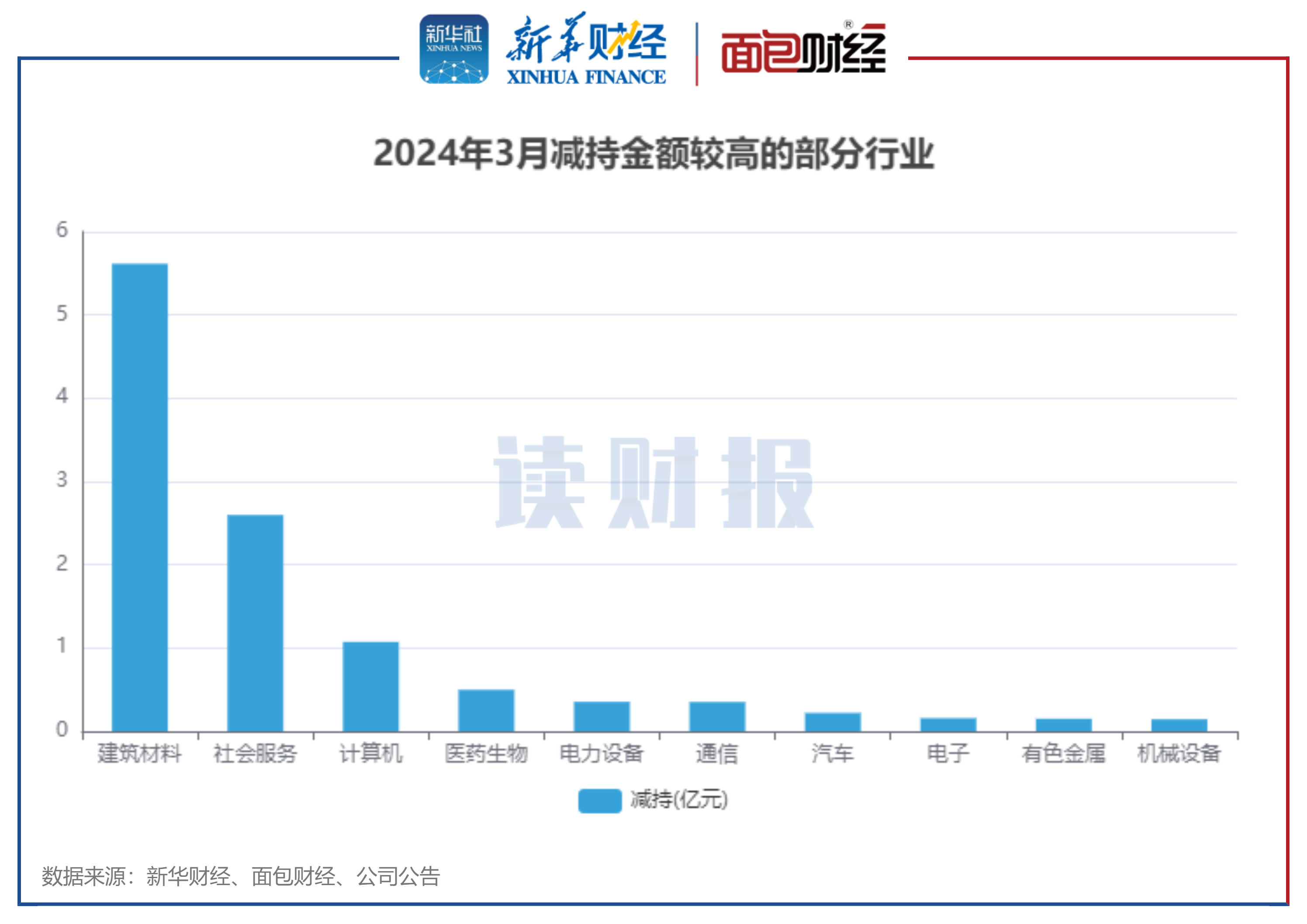 具体来看,3月减持金额最多的个股为东方雨虹。该公司董事李卫国通过大宗交易的方式合计减持3363万股,减持金额约5.53亿元。