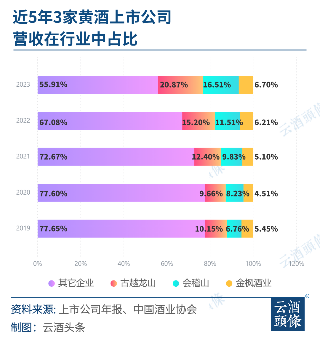 2019年,古越龙山与会稽山的营收规模差距在6个亿。五年之后,这一差距已被缩小至3.7亿。