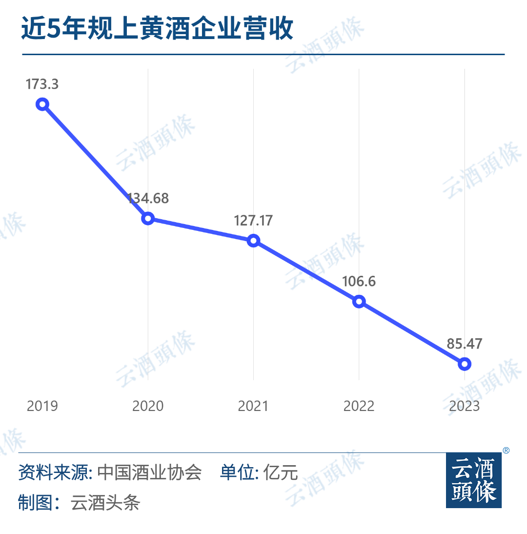 根据中国酒业协会公布的数据,2023年全国约700家黄酒生产企业共完成销售收入210亿元,仅同比增长了2.1%;实现利润总额19.5亿元,同比增长8.5%。
