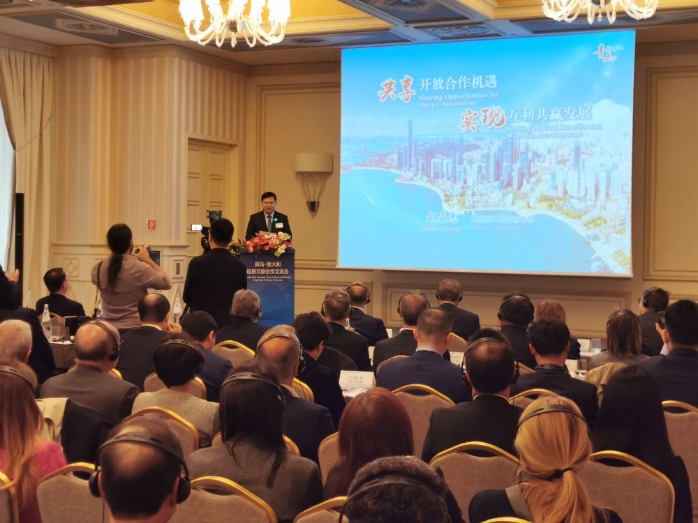 4月29日下午,由青岛市政府主办,青岛市商务局和意大利中国理事基金会共同承办的青岛-意大利经贸文旅合作交流会在意大利米兰举行,青岛市市长赵豪志出席会议并作主旨演讲,青岛市政府秘书长李虎成主持会议,中国驻米兰总领馆总领事刘侃出席活动并致辞。本次活动是近年来青岛在意大利举办的规模最大的经贸文旅交流活动,来自意大利政府机构、工商界人士共约150位嘉宾参加了活动。