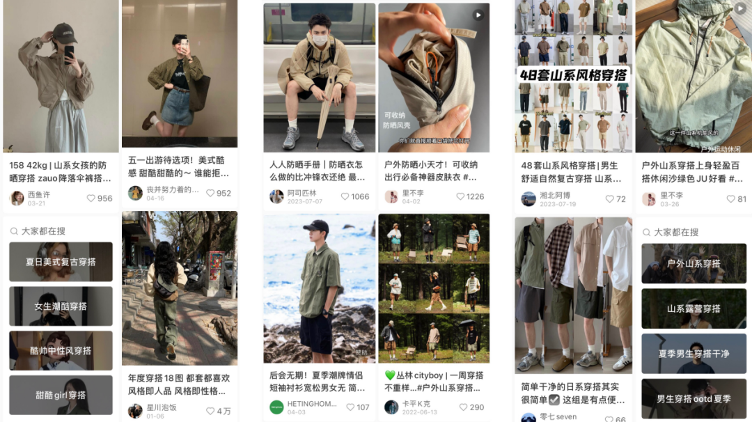 随着运动户外消费者购买心智日益成熟,不再局限于品牌和品类词,而是更偏好风格、场景等细分需求。其中,涌现出来一些非常小众、独特的风格,如潮酷、部落、山系风格快速增长。