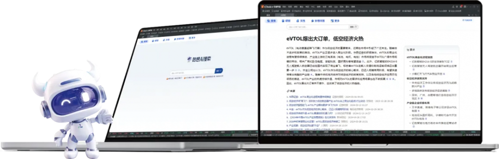 在终端内的信息搜集场景,Choice智能金融终端AI搜索带来了投研信息搜集新体验,直达结果实现效率百倍提升。AI搜索在理解搜索意图的基础上,智能挖掘和优选相关资讯、研报、公告等内容,根据用户问题归纳总结成多维度、有条理的完整回答结果及要点提炼。用户只需10秒即可了解新概念或热点事件全貌和相关影响,并对相关资讯全溯源。此外,AI搜索的加入与全局搜索互为补充,为Choice智能金融终端带来更全的搜索入口,形成了搜索闭环。