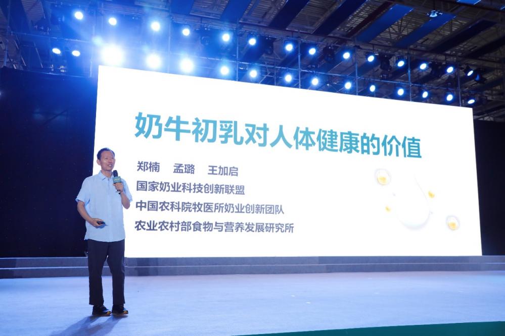 农业农村部食物与营养发展研究所王加启所长,在现场介绍, 牛初乳因为产量稀少、营养价值高、萃取工艺要求高而被誉为“乳黄金”,牛初乳是人类营养健康的天然宝库。