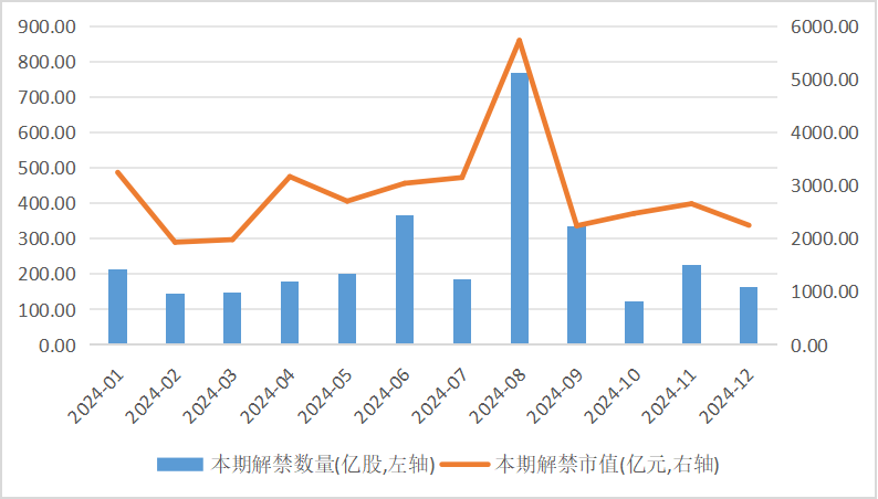 限售股解禁,意味着因多种原因锁定限售的股票可上市流通,如下图,7月份上市公司的解禁数量和解禁市值均为2024年中等水平。