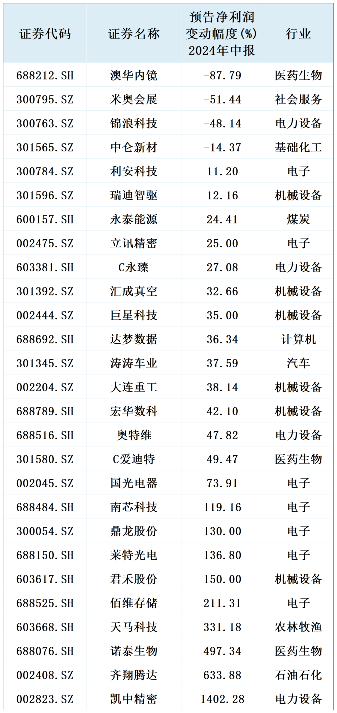 事件四:中报业绩