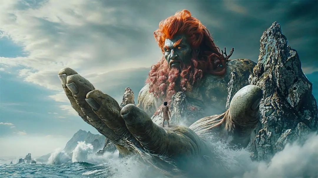 再从视觉效果来看,虽然仍能一眼看出AI生成视频的典型风格,但是也有着明显的突破。此前AI生成的视频普遍存在难以准确模拟复杂场景物理原理的问题,但在《山海奇镜之劈波斩浪》中,共工破山的镜头,从侧身半蹲到站立转体的人物运动过程,不但呈现出“站起来”的动作,甚至于整个人物还实现了立体的转体,肌肉的质感和头发的飘逸,神话角色的大表情神态以及镜头的旋转配合得十分自然。海浪翻滚、山石崩塌等物体运动幅度较大,且符合物理世界规律。