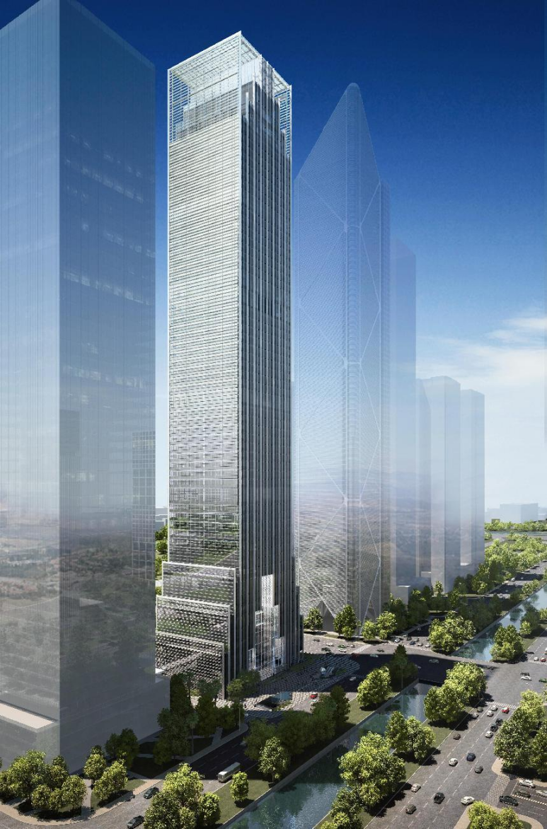 首层51.5米高“山形”大堂营造宏伟的入口门厅,与之呼应的顶部大堂41.5米高,正是取意“书山”,寓意“书山有路勤为径”;裙楼及顶部退台沿用“歇山重檐”及传统阶梯的营造法式,传递“书籍是人类进步的阶梯”的理念;夜景照明设计与建筑语言高度统一,夜幕降临为城市增添标志性光彩。