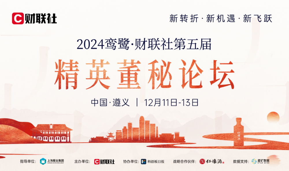 届时,财联社将邀请百余家上市公司董事长、精英董秘、央国企高级管理者、专家学者、头部券商分析师、知名基金公司高管以及一二级市场投资人等资本市场重磅嘉宾相聚遵义,共同探讨资本市场价值增长与价值管理,寻找新机遇,开启新转折,共享新飞跃。