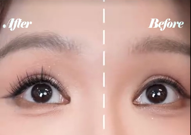 (主播旺旺佩戴假睫毛前后妆容对比图)