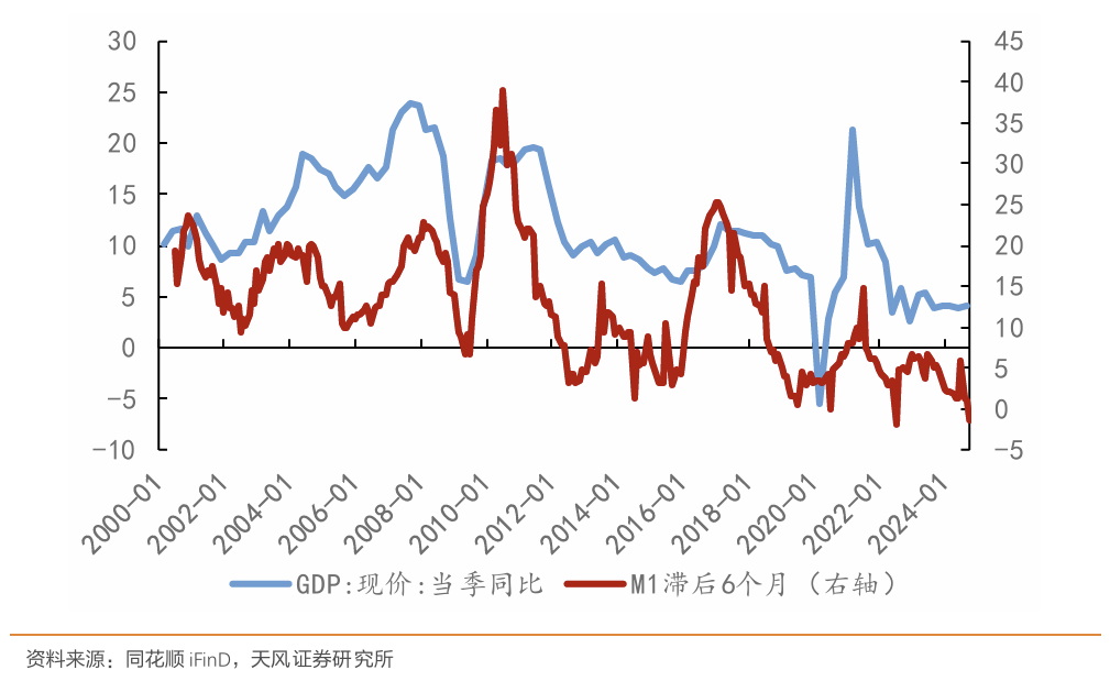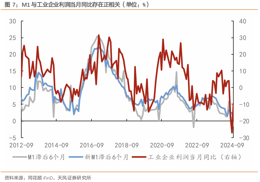 体现在数据上则是M1同比增速往往会领先于PPI同比、现价GDP、工业企业利润等经济指标6个月左右。